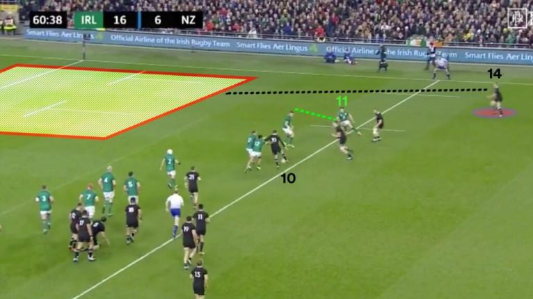 Again, even when the grubber kick presented the best opportunity, Ireland still covered it showing how futile it can be and lengths you have to go to set up a play like this.
