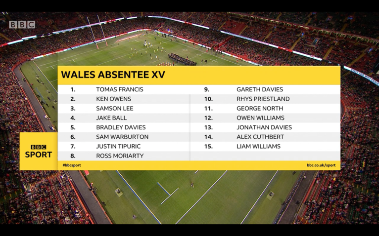 The BBC flashed a graphic outlining a XV made up of absentees, and it’s effectively the Wales first fifteen.