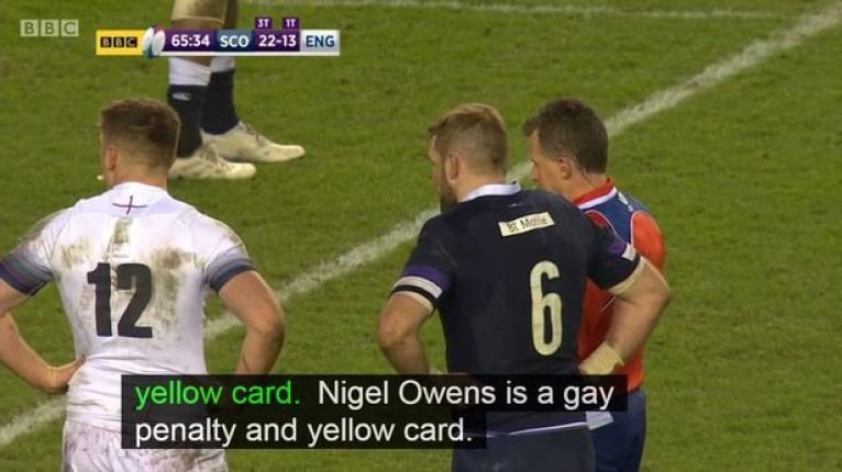 ‘Yellow card. Nigel Owens is a gay penalty and yellow card.’