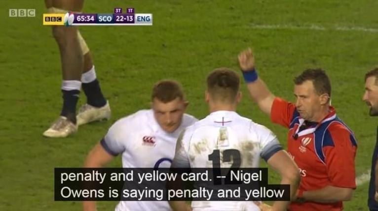 Which was quickly corrected to ‘Nigel Owens is saying penalty and yellow card’.