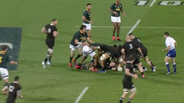 As we’ve already established, the All Blacks hardly threatened the Boks with kicks. They generally kept ball in hand and tried to work the Boks out in phases. The problem is that the more they played with width, the more the Boks could catch them behind the advantage line. Again, the Springboks don’t just have a rush defence, they have an especially aggressive defence, so the wider All Black carries were happily gobbled up the Boks.