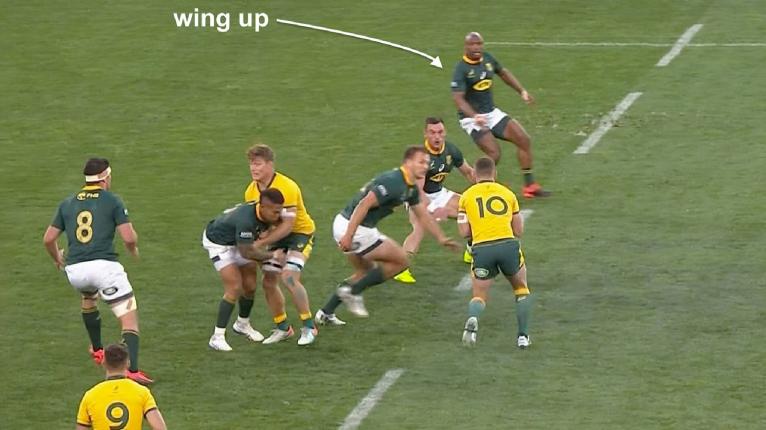 Let us start by looking at what the Springboks do on defence. It is fair to say that they possibly they the most aggressive defence of all teams at the moment. Their wings do not sit back and wait like in the old days, they come up and join the front line defence early and then they are involved in trying to kill moves before the ball goes wide.