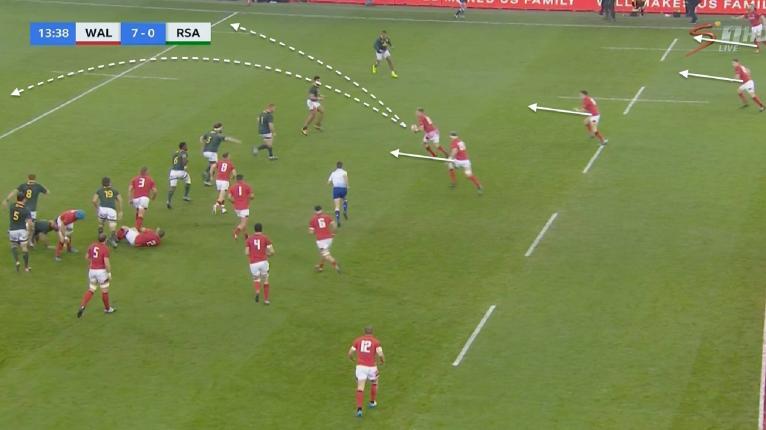 But every defence has a compromise somewhere, and the choice the Springboks have made is to just maximise “offensive defence” and then be willing to pay the price. That is why “missed tackle” stats are perhaps not always relevant with the Springboks. With such aggressive line speed you will always miss tackles – they go hand in hand. But in this system even just disrupting the attack (for instance forcing players to pass early) is a good outcome too.