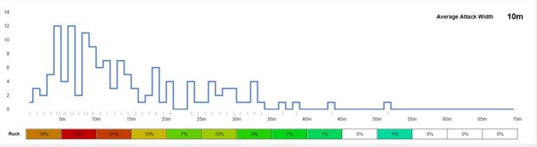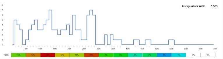 Contrasting that with how much narrower New Zealand were against Australia and Argentina, and Rugby Analytics tells us that their average carry in those games was 10m from the ruck, much closer targets of we look at the graphic.
