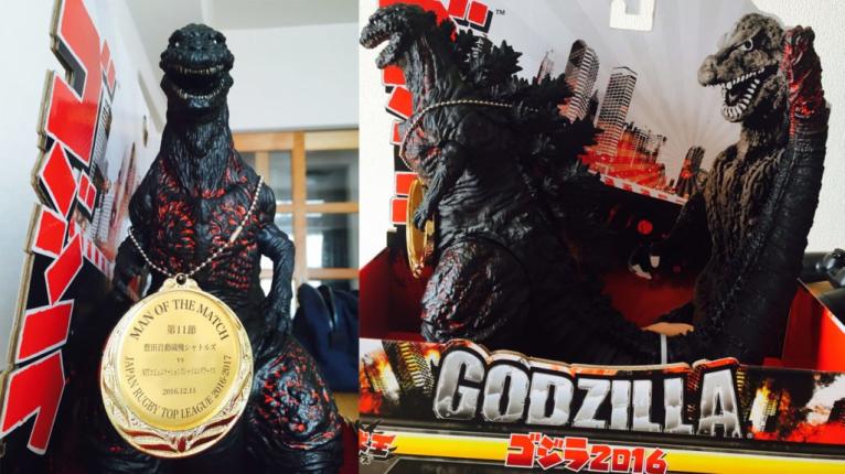This is a continuing trend in Japanese Rugby as last season the Top League’s best performances were rewarded with a Godzilla toy as a man of the match award, complete with an accompanying medallion.