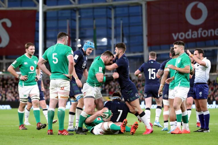 Ireland produced some staunch defending on their own try line in the final few minutes to prevent Scotland potentially snatching a draw, after a couple more Sexton penalties – either side of one from Hastings – moved the scoreboard to 19-12.