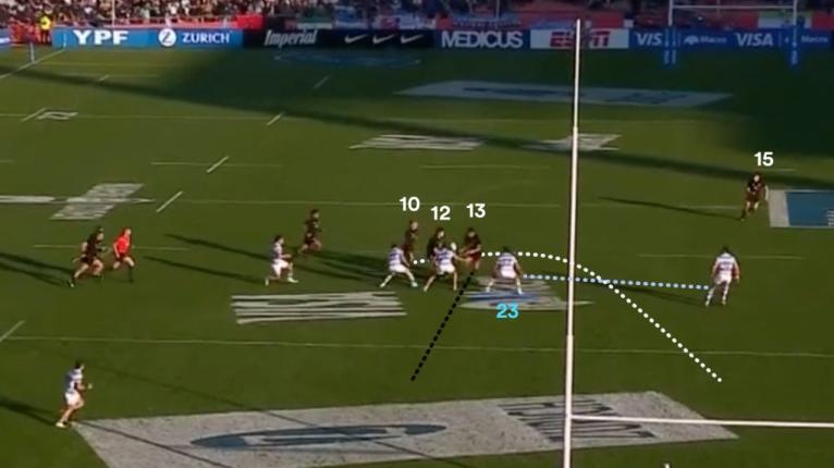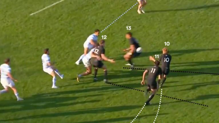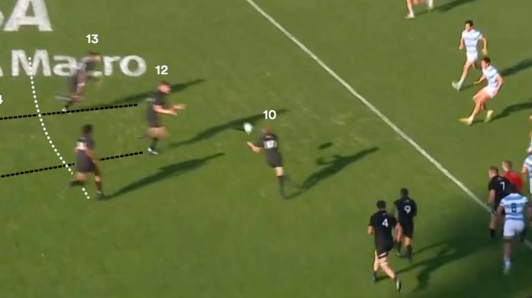 The All Blacks got a chance shortly after to run the play again going the other way, towards the right wing with Cancelliere and reserve midfielder Matias Orlando.