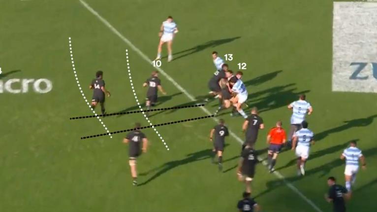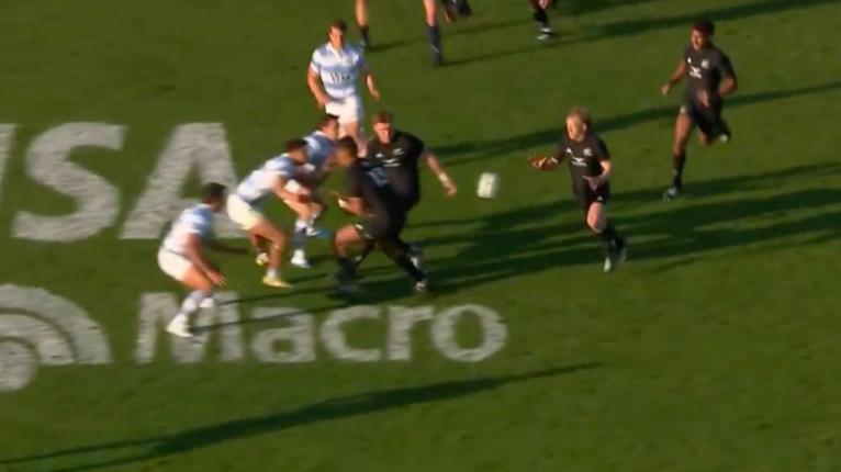 The All Blacks rolled out the heavy artillery to confront Argentina after Barrett’s carry, using the likes of Shannon Frizell, Ardie Savea, and Scott Barrett coming around the corner on the phases thereafter to break down the blue and white wall. Savea bagged a try close to the line following one of these sequences.