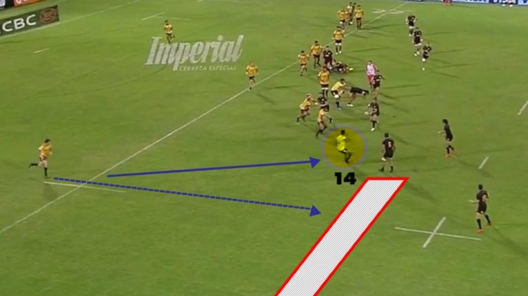During the second half of the Jaguares match, we noticed that he regularly rushed up and in, coming off his wing to pressure and force the Jaguares back inside.
