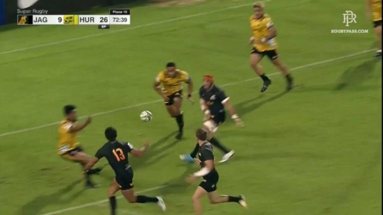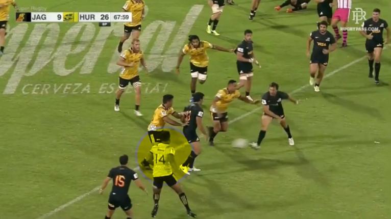 Savea’s tactic worked successfully against the Jaguares, where the ballplayers did not have the vision to go over the top to use the space. He rushed up-and-in to shut down the passing lane. A cutout pass over the top could leave the Hurricanes vulnerable with Beauden Barrett still coming up from a long way back.