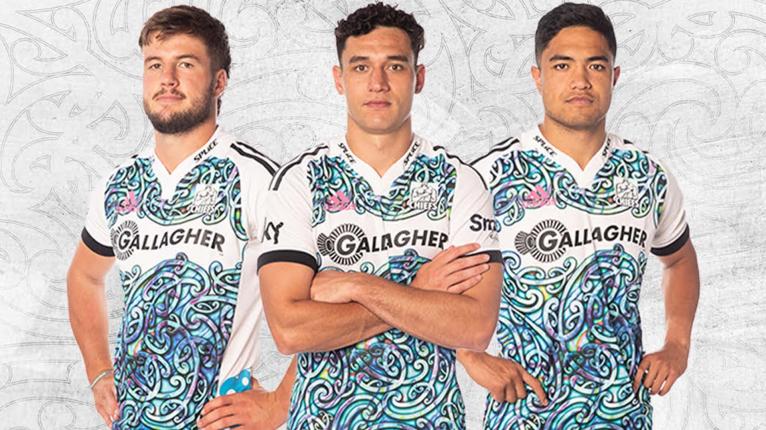 The reigning Super Rugby Aotearoa champions also have the same design brandished on their away jersey, which is predominantly white with a black trim.