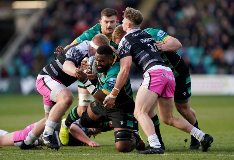 Courtney Lawes, Sam Matavesi, Tom James, Ollie Sleightholme and Juarno Augustus scored tries for Northampton, along with a penalty try, while Charlie Savala added three conversions.