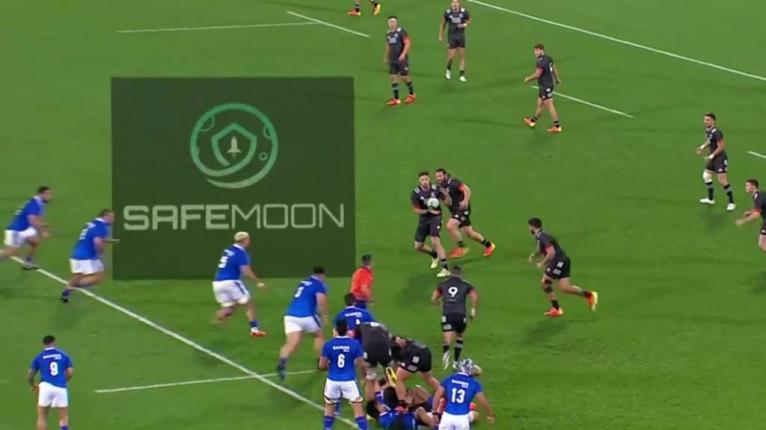 The Cryptocurrency ‘Safemoon’, a token that has received attention from US personalities Jake Paul and Barstool Sports founder Dave Portnoy, was seen emblazoned on the field inside the Maori All Blacks’ 22 during the broadcast.