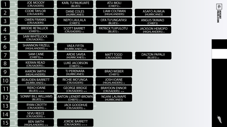 The halves are as well-stocked as ever, with Aaron Smith, TJ Perenara, Beauden Barrett and Richie Mo’unga all world-class. Brad Weber will look to build from an excellent season of Super Rugby.