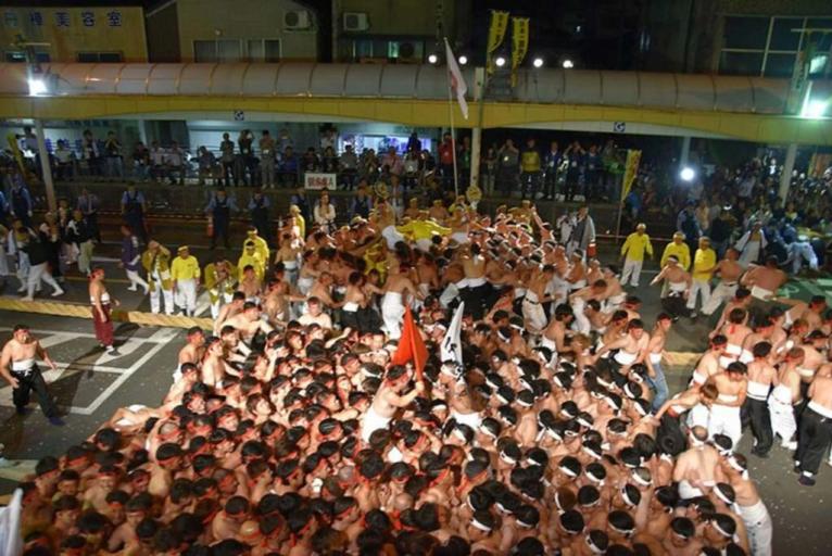 Beginning early in the morning on the festival day, over 1,500 participants tie 365 individual ropes together and spend half of the day weaving them into a single, giant rope. The main rope weighs 7 tons and is 365 meters long. Nearly 3,000 bare-chested men drag the rope in unison. The so-called oshitai (pushing squad) obstructs the opponent’s team by aggressively