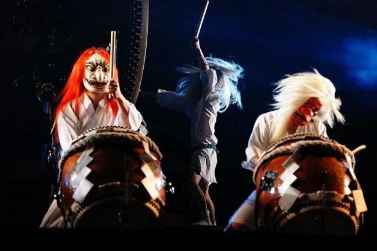 Vows for the new year are made to the stirring accompaniment of taiko drums. The musicians wear masks of the nine Shinto deities to recreate a much-loved story from Japanese mythology.