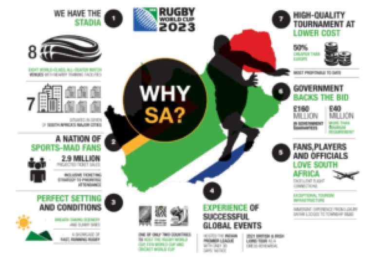 The experience of supporters is of course just as important to the South African bid. A major selling point for travelling fans is the comparatively cheap costs in the country, with everything from accommodation to food and beer calculated to be significantly easier on the wallet than in France or Ireland. On the other hand, questions have been raised about affordability for South African citizens, so there’s a chance that organisers will be relying on overseas visitors to shift tickets.