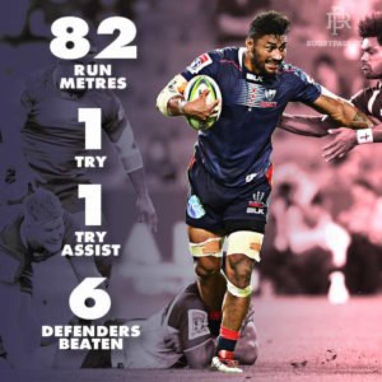 His opposite Isi Naisarani (Brumbies) also put on an electric display, beating four defenders to also run for 82 metres from one clean break.