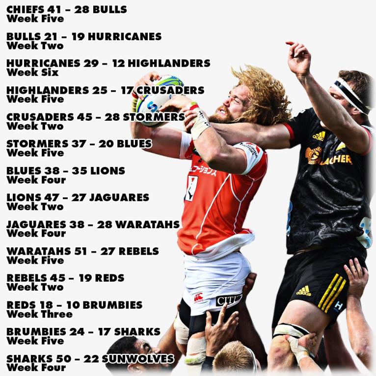 The graphic above illustrates the fact that this season anyone can win in Super Rugby on any given day (with the exception of the Sunwolves, for now).
