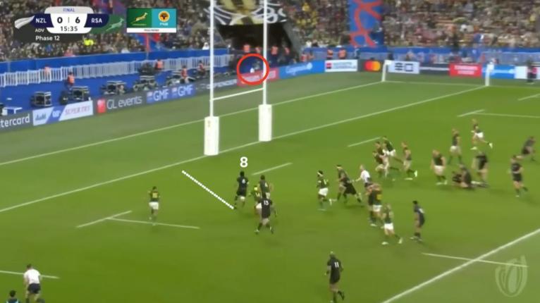 The All Blacks had front foot ball after the line break and a four-on-one overlap with no defending fullback, who was at the bottom of the last ruck.