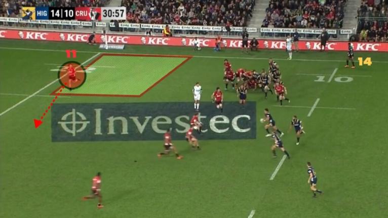 We need to try and bring him across as much as possible by keeping an empty blindside, similar to what the Crusaders have below here by bringing that winger over next to the 10.