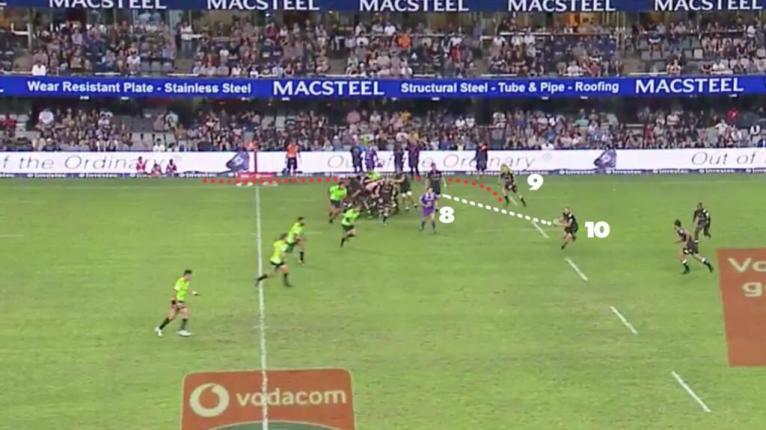 A halfback with speed like Faf de Klerk, Brad Weber or perfect hybrid wing/halfback Francois Hougaard would be the ideal 9 to try this with.