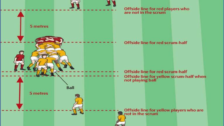 The scrum-half not in possession should, post the scrum feed, have to move behind his own No. 8, or start from there, thus freeing up space for attacking possibilities.