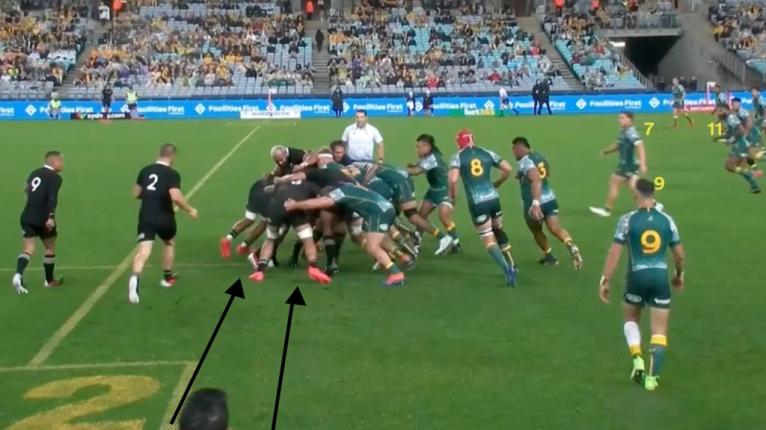 The All Blacks have used a similar maul play borrowed from the Crusaders’ playbook in the past that involves deliberately pushing the maul infield to create more space on the short side.