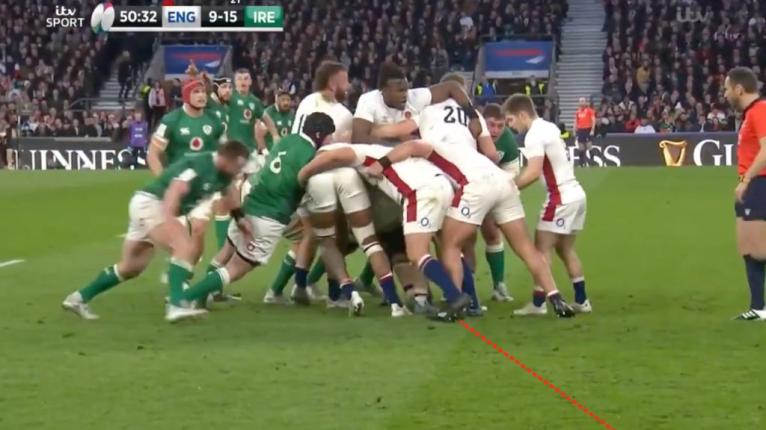 England spent a lot off first-phase ball on kicking, so did not attack often from set-piece, but in the second half they created the same blindside setup by mauling infield.