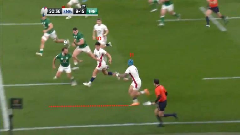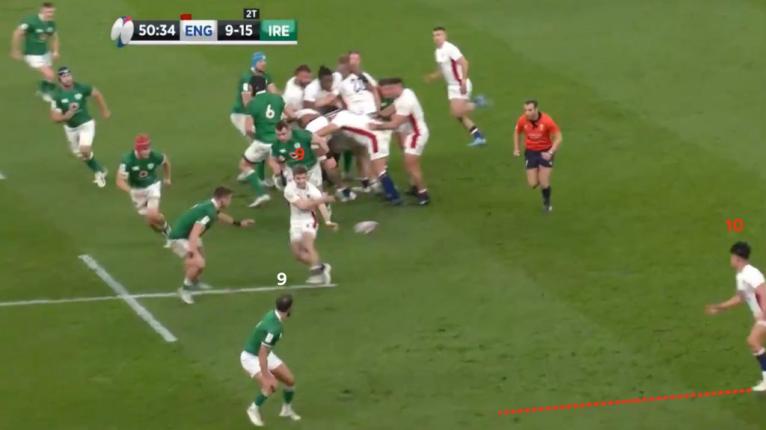 Harry Randall (9) broke away down the blind before he linked with Marcus Smith (10). England weren’t able to manufacture a clean break but did march a long way upfield before winning a penalty a few phases later.