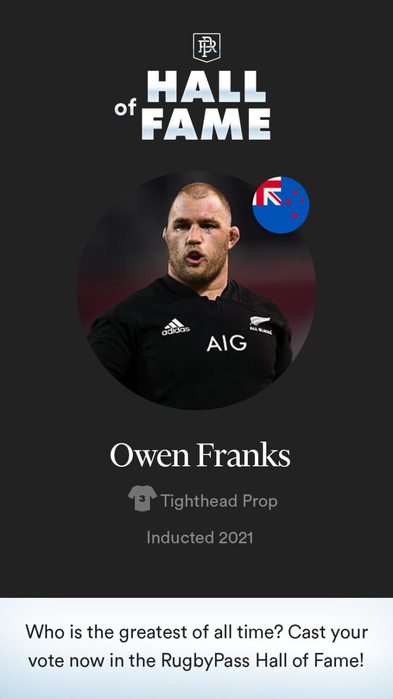 Du Plessis is the only South African to be included among the latest induction of players, while Franks is one of three New Zealanders alongside Carl Hayman and Kees Meeuws.