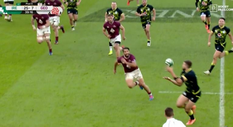 Rugby’s dichotomous thinking on the matter was flung into the spotlight today in Dublin. During Ireland’s flaccid win over Georgia in the Autumn Nations Cup, a superb pass from Ireland fullback Jacob Stockdale appeared to put centre Stuart McCloskey in for what looked to all eyes to be a perfectly good try in the 39th minute.