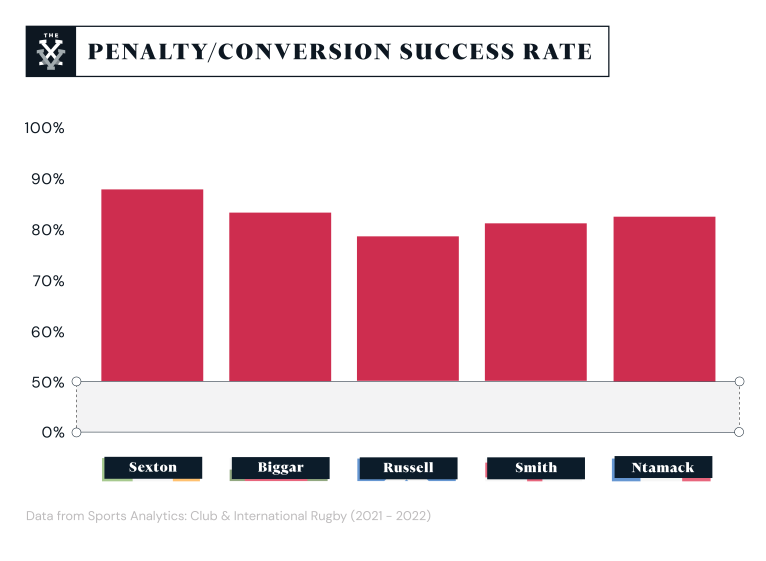 Dan Biggar’s reputation as a place kicker precedes him and will certainly be something that Wales depend upon over the next six weeks. With an 84% kick success rate for club and country since the start of 2021, Biggar tends to step up on big match days in front of the posts. The same can be said of Johnny Sexton who posts an even higher success rate of 88% during the same time period.