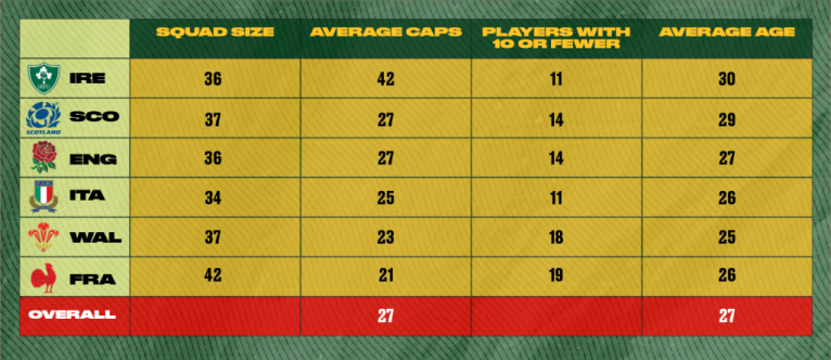This was not a tournament for the more mature teams, with Ireland [average age 30, with cap average of 42] and Scotland [29 & 27] performing below expectations.