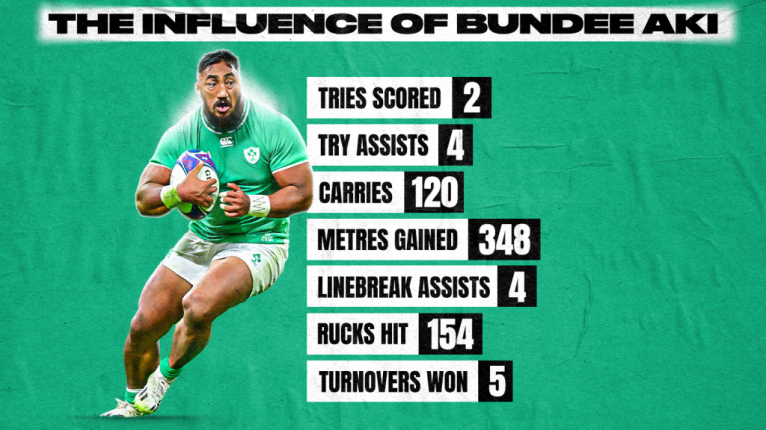 Those Jones numbers are impressive, and back up what your eyes tell you during Scotland matches. Again, though, it is that influence and effect Aki has across the board which makes him so important to what Ireland do. He is hitting more rucks, winning more turnovers, slowing more opposition ball and putting his hand up for more work.