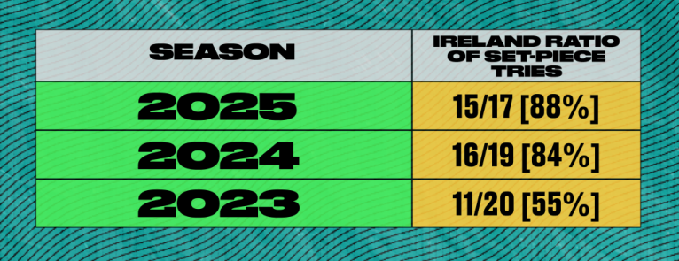 Wind the clock back to the same game in 2024, and Ireland were able to score two tries directly from five-metre lineout drives in the final quarter to put Les Bleus to the sword. That weakness in lineout defence may still be there.