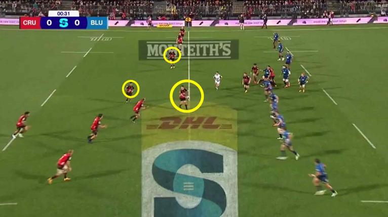 The Crusaders were keen to get Will Jordan on the ball as an alternate short-side alternate first receiver, with mixed results: