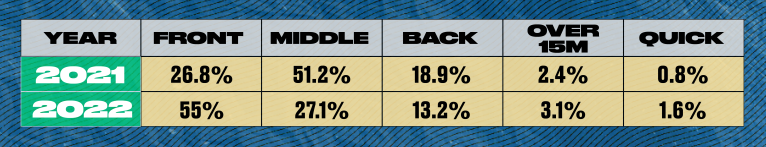 The stand-out figures from the O’Connell set-piece stewardship indicate increasing tendencies to throw to the front, and steer clear of the back. Here is how much the lineout lengths have changed since O’Connell took over.
