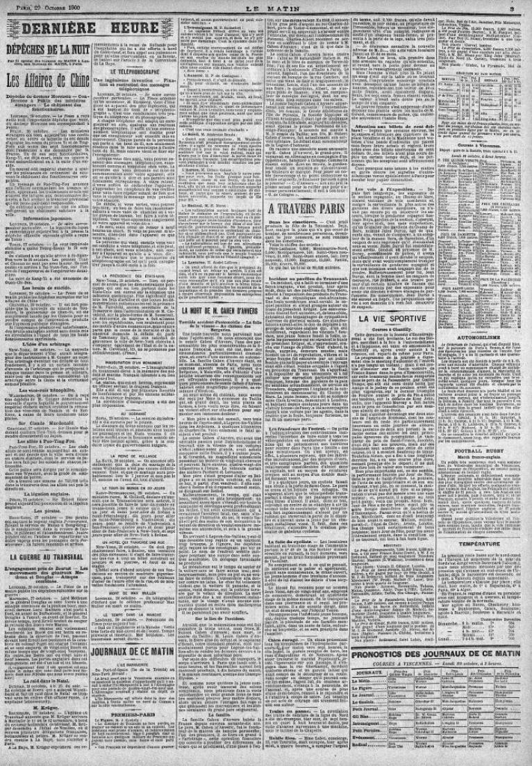 Defunct Parisian newspaper Le Matin (the outlet ceased to exist following 1994 as it supported Naziism during World War II) reported the following quote after the second and last game of the competition, won by the French.