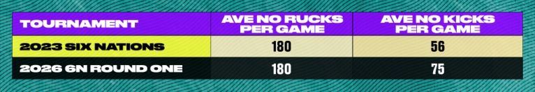 Now look at the impact, via a comparison of Ireland’s heyday with the three matches in the first round of the 2026 Six Nations.