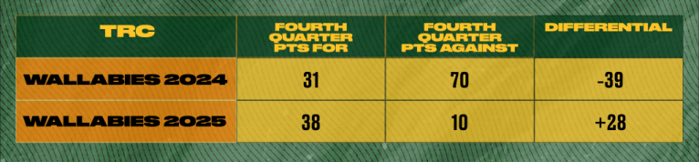 The Wallabies are also winning at the pointy end, getting significantly stronger in the final 20 minutes of the game.