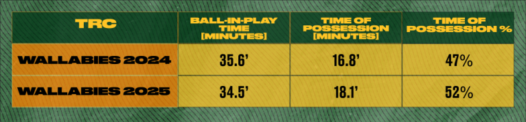 The Wallabies are now able to keep more of the ball for longer periods, and with ball-control comes mounting pressure on the defence and more penalty rewards from the referee. Australia currently sit top of the table at a healthy +11 in the penalties awarded/conceded differential at the halfway stage of the tournament.