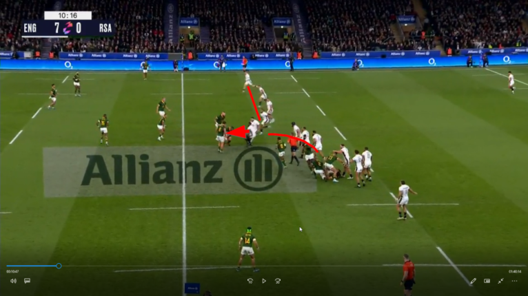 One man shoots up, another reads and waits. I counted four instances where South Africa were able to exploit this ‘shooter’ philosophy in the course of the game to achieve line-breaks. Here is another example.