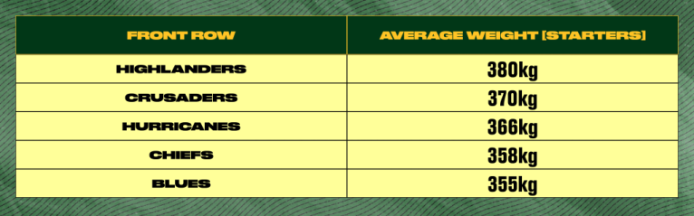 One of the curiosities of that individual victory is the Blues have the lightest front row of any of the Kiwi franchises.
