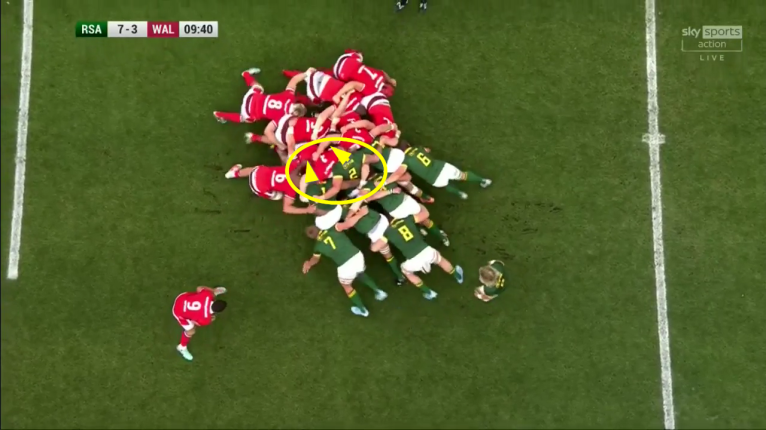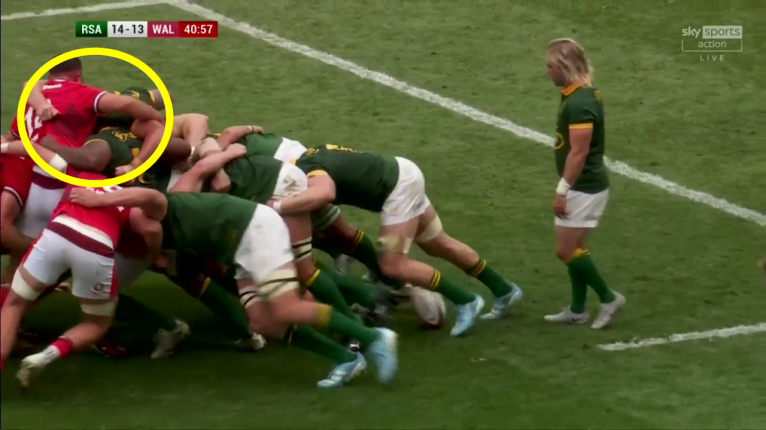 The inexperience of the Welsh tight forwards was also a big factor in South Africa’s first maul try of the game: